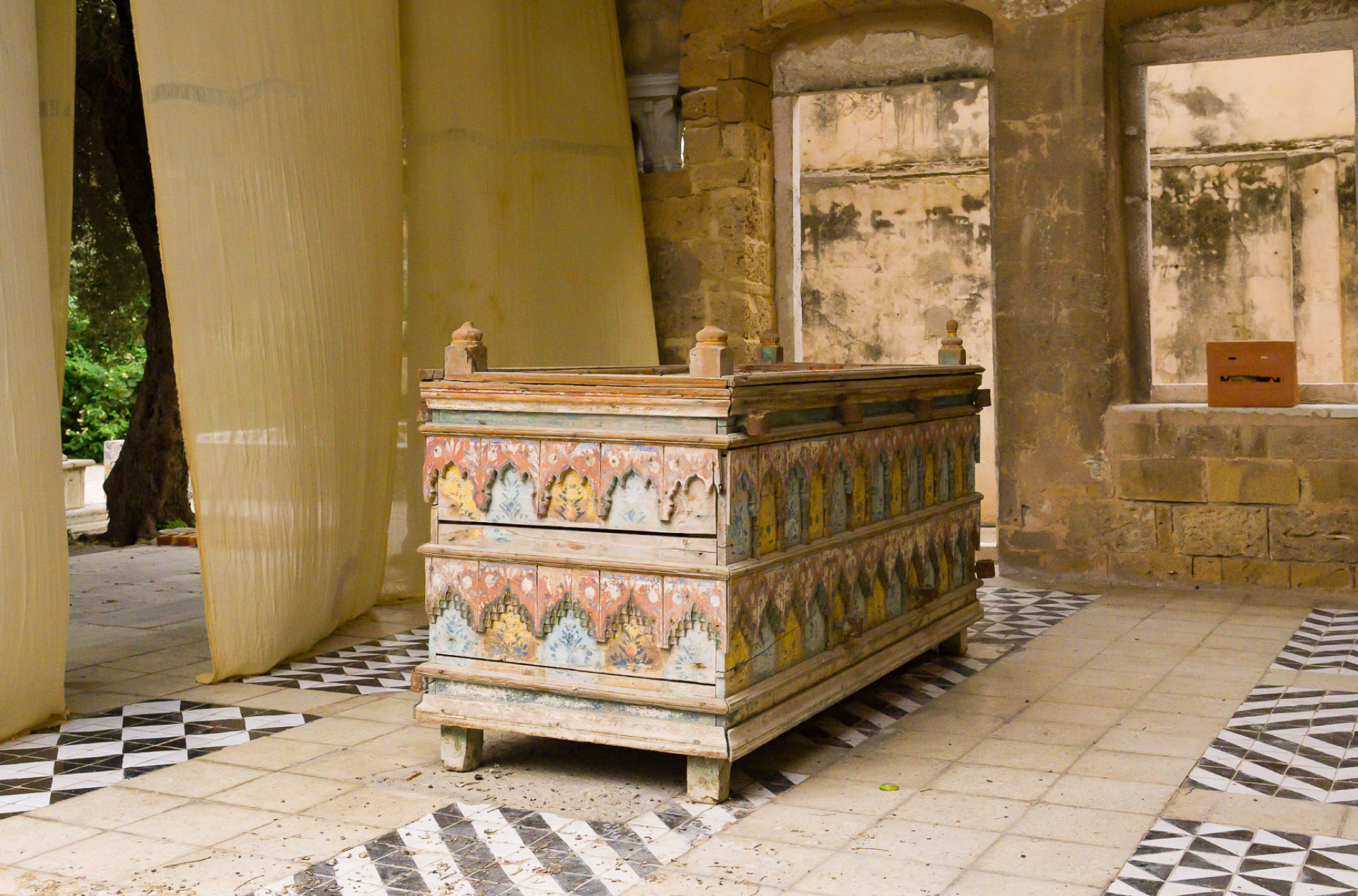 Unexpectedly, he discovered that the same tradition exists in Tunisia, revealing shared heritage and cultural overlaps. Zedani collaborated with local Tarq singers, potters, beekeepers, and botanists to create a sensory ecosystem at Tourbet Sidi Bou Khrissane.